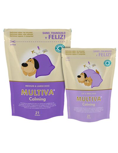 Multiva Calming es un Suplemento de Fórmula Sinérgica para Favorecer un Estado de Calma Formulado en Chews de Alta Palatabilidad.